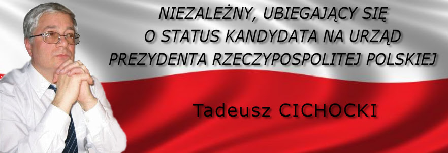 Na dole mojego bloga widnieje napis, że iskra ma wyjść z Polski. I teraz mamy okazję tą wizję urzeczywistnić, gdyż pojawił się nam człowiek skromny i mądry, który ma gotowe rozwiązania dla Polaków, którym los ojczyzny nie jest obojętny oraz którzy nie życzą sobie być niewolnikami. Tą osobą jest Pan Tadeusz Cichocki, który dał nam gotowe narzędzia do walki z systemem.